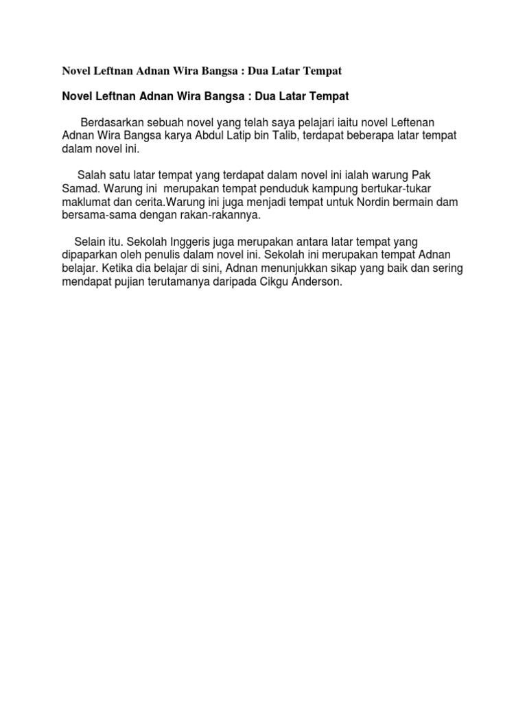 Novel Leftenan Adnan Wira Bangsa. Pasir panjang Contoh. Latar tempat yang pertama ialah xxxxxx.