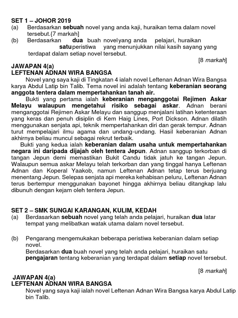 Contoh Soalan Novel Leftenan Adnan Wira Bangsa Terengganu Q Otosection